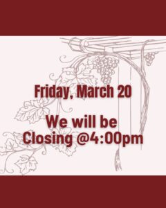 Wine Tastings will be held the top of every hour 12:00-3:00pm today🍷