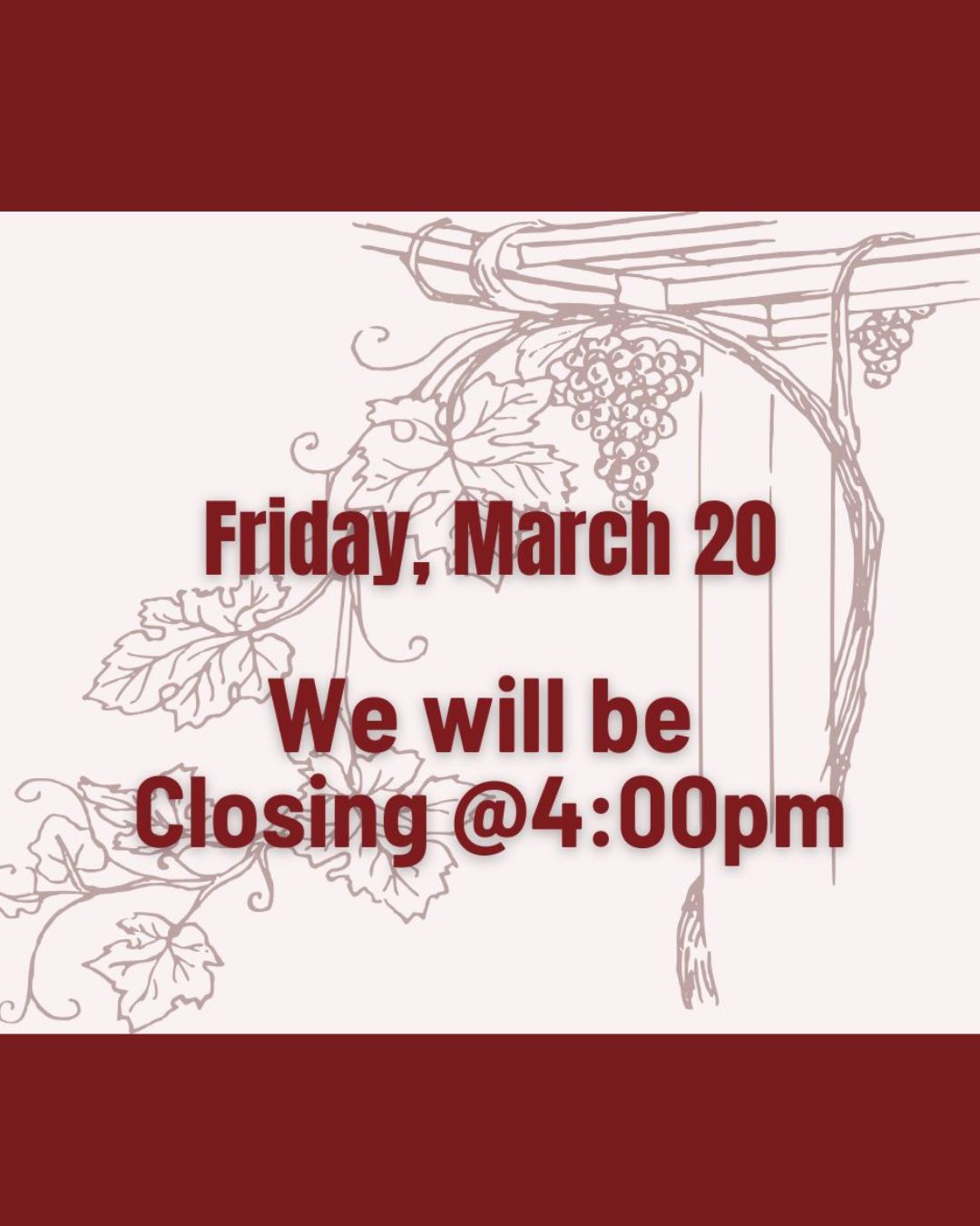 Today we will close at 4:00pm and will resume normal business hours,
